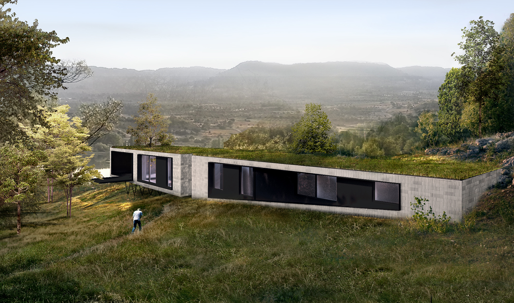 Estamos trabajando en las imágenes de la Casa Folgoso, en Santiago de Compostela, modificando pequeños detalles de volumetría, o haciendo pruebas de materiales… Hormigón visto, fachadas de zinc y ventanales de vidrio para introducir luz y mirar a las vistas de las geniales vistas del verde paisaje.