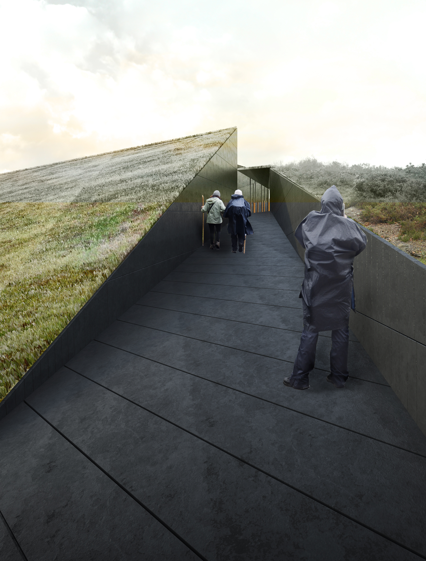 El Castro de Castromaior se ofrece al caminante, oculto tras una grieta. Lo que antes era una fortificación, ahora es un paisaje de apariencia natural que, agrietado, nos conduce a un sorprendente interior. De la misma manera, el nuevo centro de visitantes se levanta para recrear una naturaleza de carácter atemporal. Una grieta se ofrece así en el camino, sin estridencias formales, para que el peregrino tenga la opción de elegir un alto en su viaje, una parada voluntaria, o seguir su recorrido por el verde paisaje natural.
